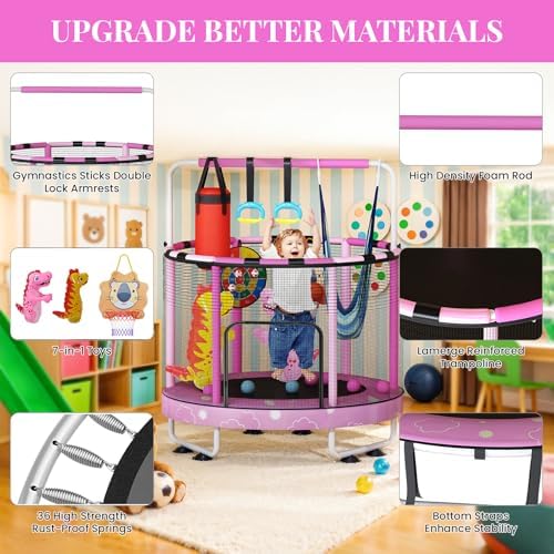 Modelo LAMERGE 55 pulgadas siete funciones. Pasamanos ajustable red seguridad. Uso interior exterior toddlers. Diseño durable protección total. Diversión chicos chicas 1-8 años. Estructura estable peso distribuido. Materiales premium larga duración. Actividad variada desarrollo motor. Regalo práctico entretenimiento diario.